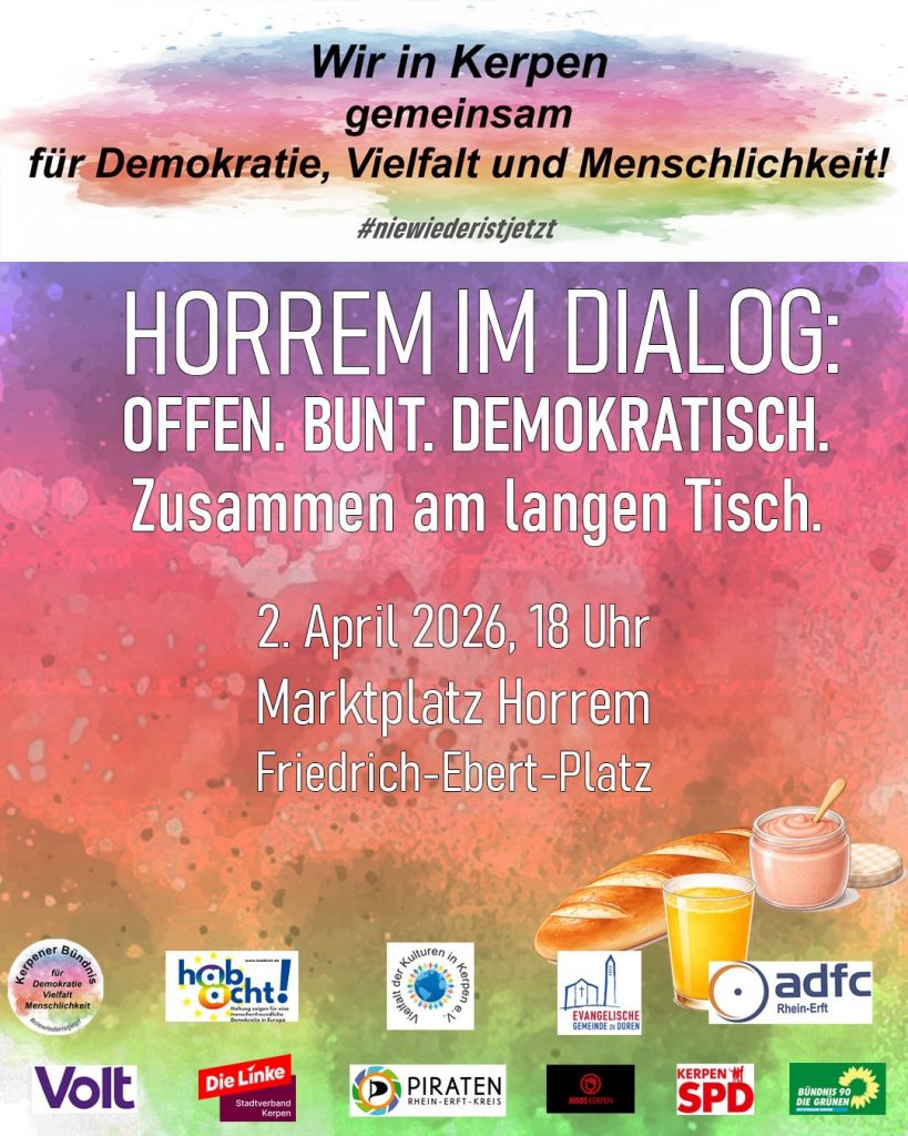 📢 Horrem im Dialog – Wir gemeinsam für Demokratie, Vielfalt & Menschlichkeit!
